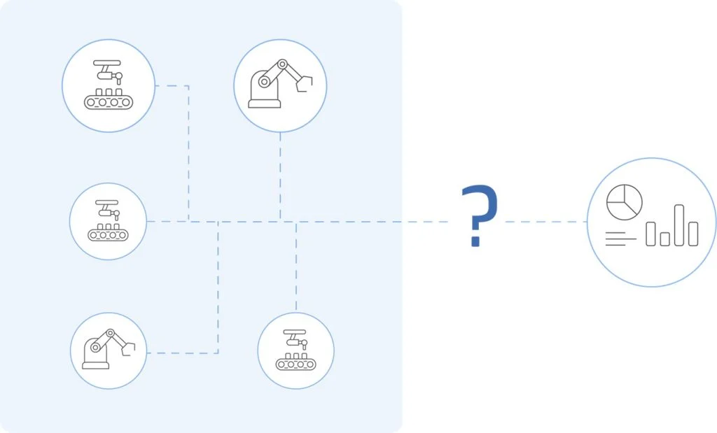 Often, IoT sensor data alone does not provide a complete picture of the situation. It is crucial to combine it with other sources, such as data from ERP systems (orders, production) or MES systems (machine scheduling).