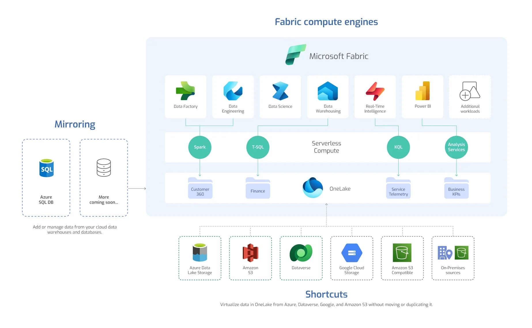 Dzięki temu narzędzia takie jak lakehouse, hurtownie danych czy Power BI mogą korzystać z tych samych zbiorów danych bez konieczności ich wielokrotnego przetwarzania lub przenoszenia między usługami.